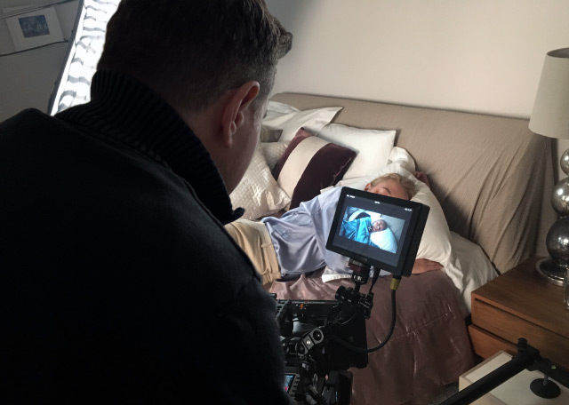 Sophia Myles on location with DoP Simon Rowling and Director Dan Bronzite