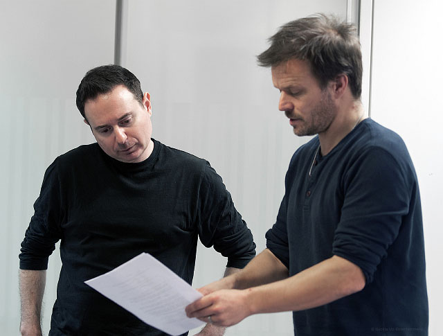 First Assistant Director Charlie Oakden discussing next scene with Director Dan Bronzite
